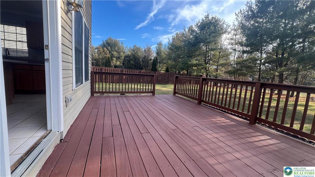 Win-win rental opportunity in Heritage Heights & East Penn School District! This lovely, pet-friendly end-unit townhome offers the space, location, and comfort everyone wants—at a value that’s hard to beat. Bright and cheery throughout with abundant natural light, this home also stands out with a larger end-unit lot, extra privacy, and a wooded backdrop. Enjoy outdoor living on the huge deck with steps down to a spacious backyard—perfect for relaxing, entertaining, or letting kids and pet enjoy the outdoors. Inside, stylish plank flooring welcomes you into a warm, inviting main level featuring a spacious family room with recessed lighting (fireplace is ornamental only) and a convenient half bath. The eat-in kitchen offers a center island, pantry, and plenty of workspace, with easy access to the deck and yard. Upstairs, you’ll find three well-sized bedrooms, including a primary suite with a vaulted ceiling, walk-in closet, and private bath with double sinks, plus a full hall bath & additional half bathon main flr for convenience. The finished basement provides excellent extra living space—ideal for a home office, gym, playroom, or media area—along with a separate laundry area. Ample storage throughout with multiple closets and additional storage areas makes staying organized easy. Freshly painted with shampooed carpets and ready for immediate occupancy. Economical gas heat helps keep utility costs manageable. Schedule your showing today to make it your sweet home this YEAR!